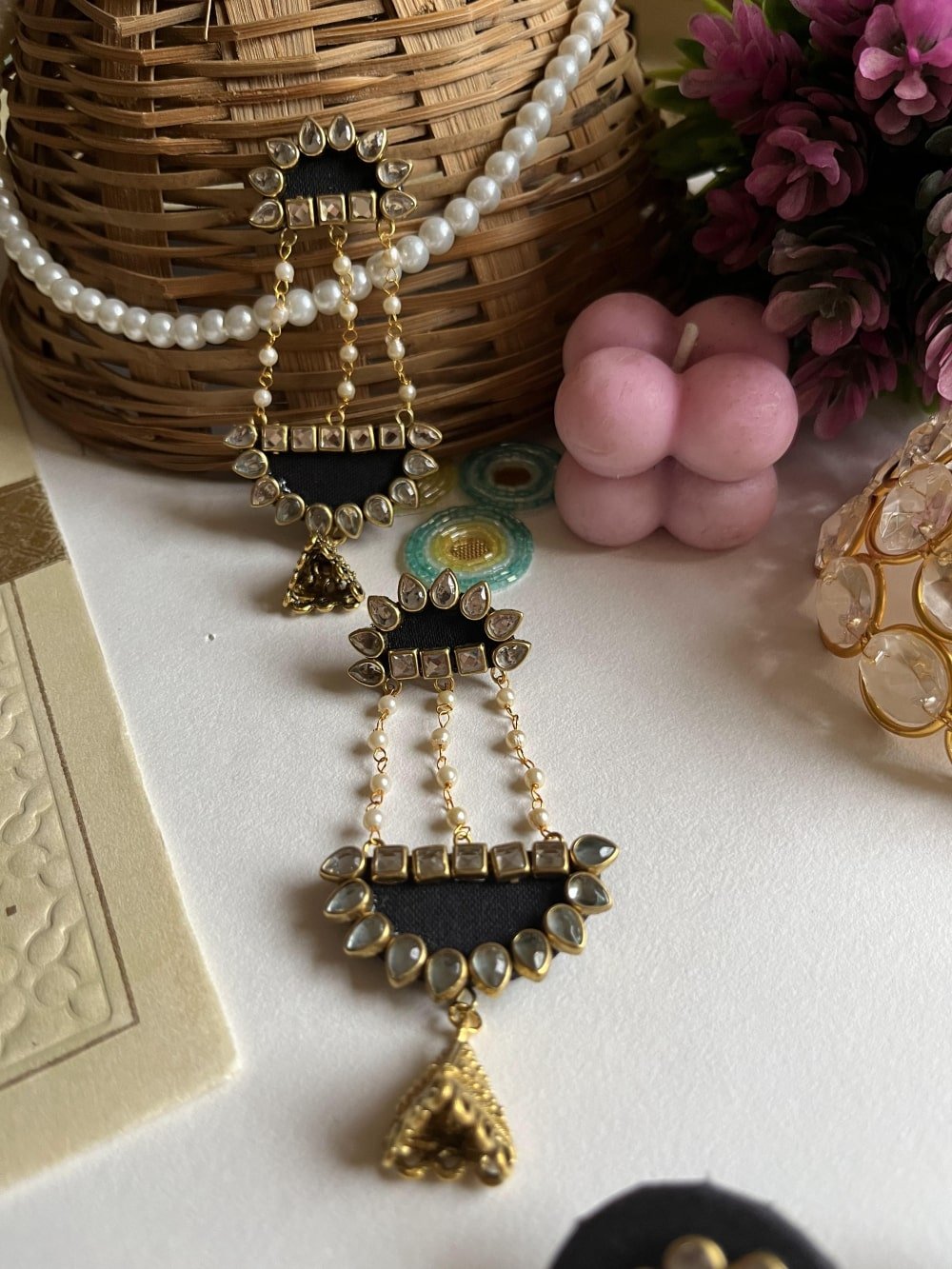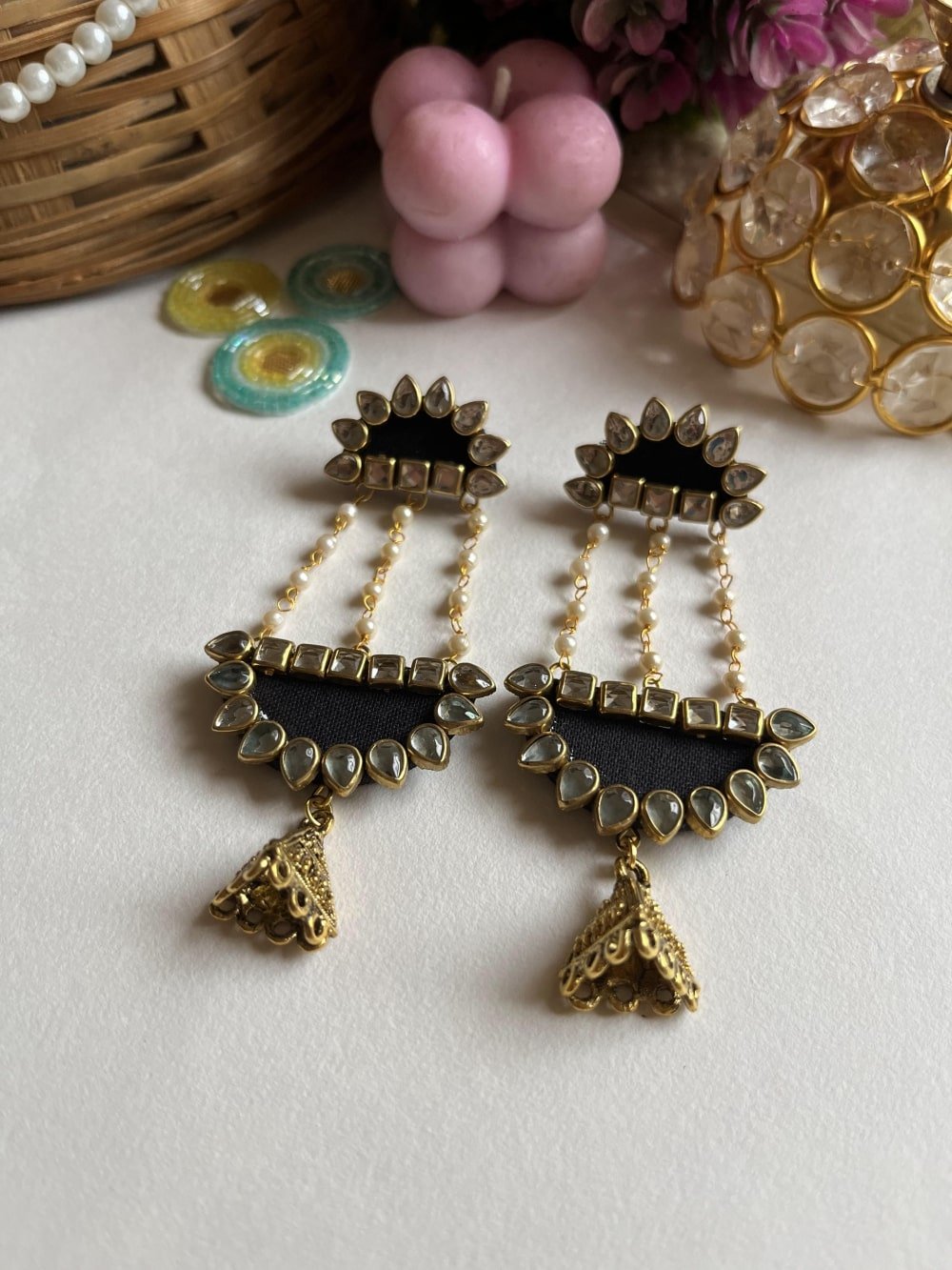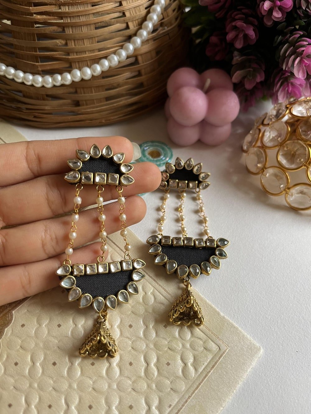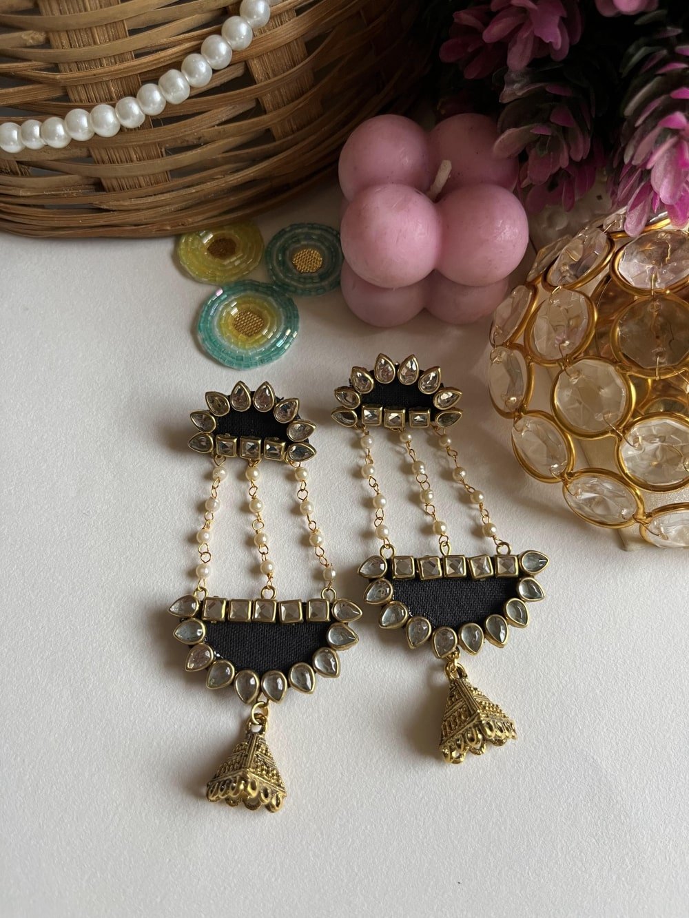 Black Drop Dangles Jhumki Earrings | Handmade Fabric Jewellry